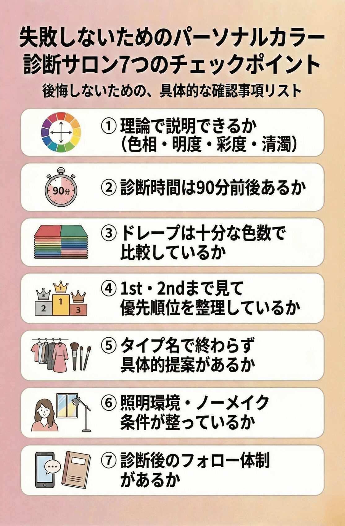 失敗しないためのパーソナルカラー診断サロン7つのチェックポイント
