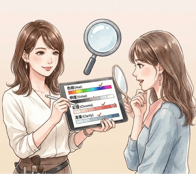色相・明度・彩度・清濁のどの要素が影響しているのかを言語化できるサロンは、分析が整理されています。